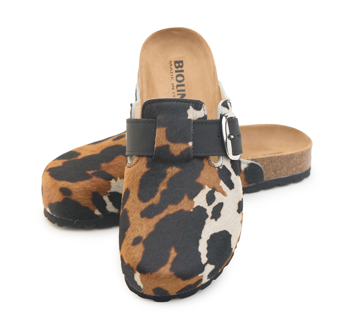 Sabot con tomaia in vera pelle cavallino mucca con cuciture. Regolabile, con cinturino dotato di fibbia in metallo.