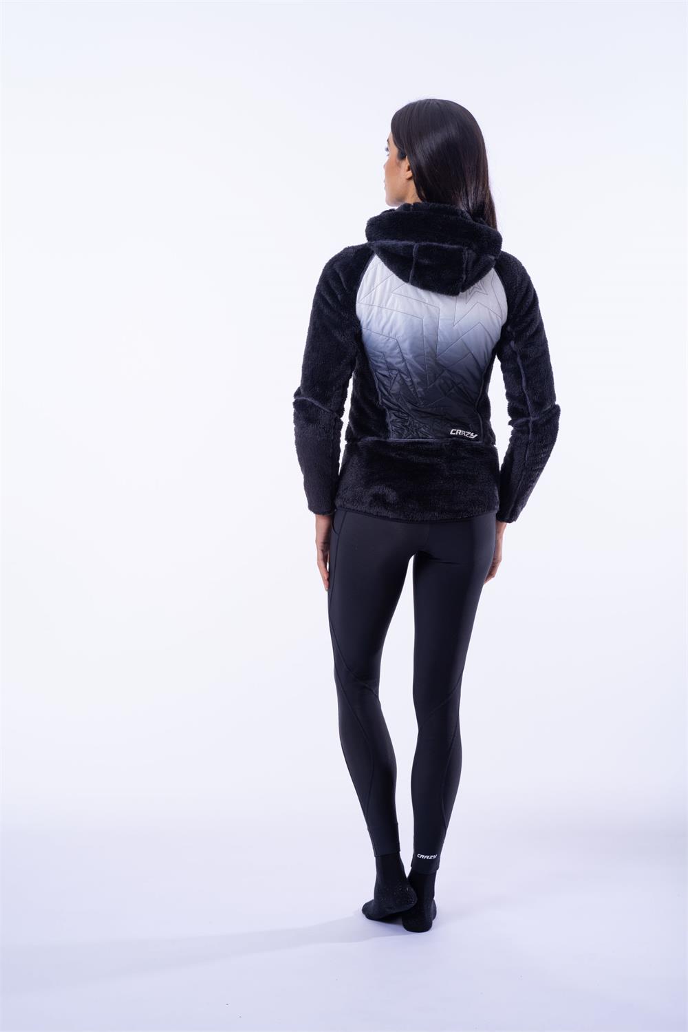 Giacca ibrida ad alta termicità con cappuccio. La nostra giacca ibrida più calda che combina pannelli rivestiti in nylon con pannelli in calda pelliccetta. Ottimo terzo strato, caldo con protezione in nylon anteriore e look accattivante, ideale per essere utilizzata in ogni attività all’aria aperta. È prodotta in morbida e calda pelliccetta “Fluffy Warm” rivestita nel pannello frontale in nylon Pertex Quantum, idrorepellente e antivento. Il fascione sul fondo è realizzato in tessuto HP tecnico, elastico, fasciante ed usato nella versione 3D, con una struttura tridimensionale che favorisce la traspirazione.