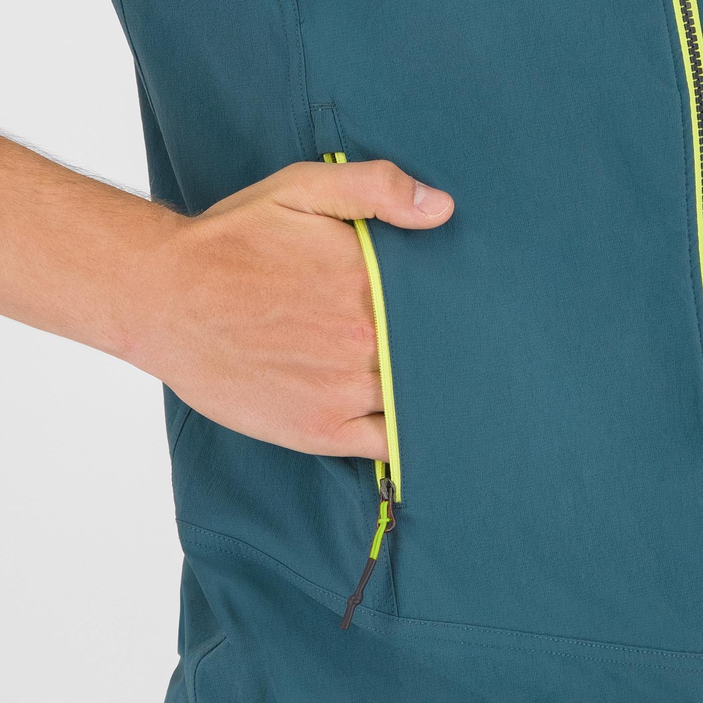 Gilet antivento altamente traspirante con trattamento DWR, perfetto per l’attività outdoor estiva.