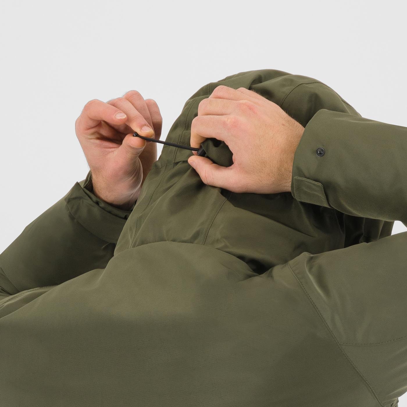 Il tessuto esterno è 100% riciclato con 10.000 mm di colonna d’acqua e 10.000 g/m2/24h di traspirazione, con trattamento DWR senza PFAS intenzionalmente aggiunti, che rende la giacca perfetta per quando piove un po’ in città. L’imbottitura sintetica è di 150gr. sulla parte del busto e 130gr. sulle maniche.