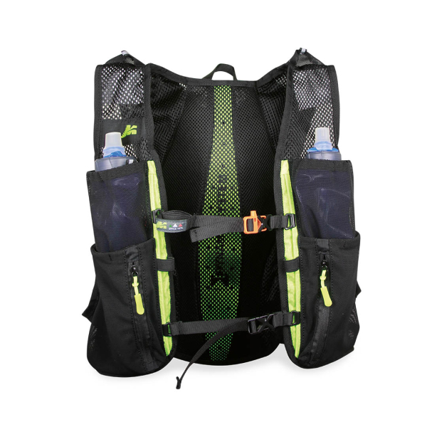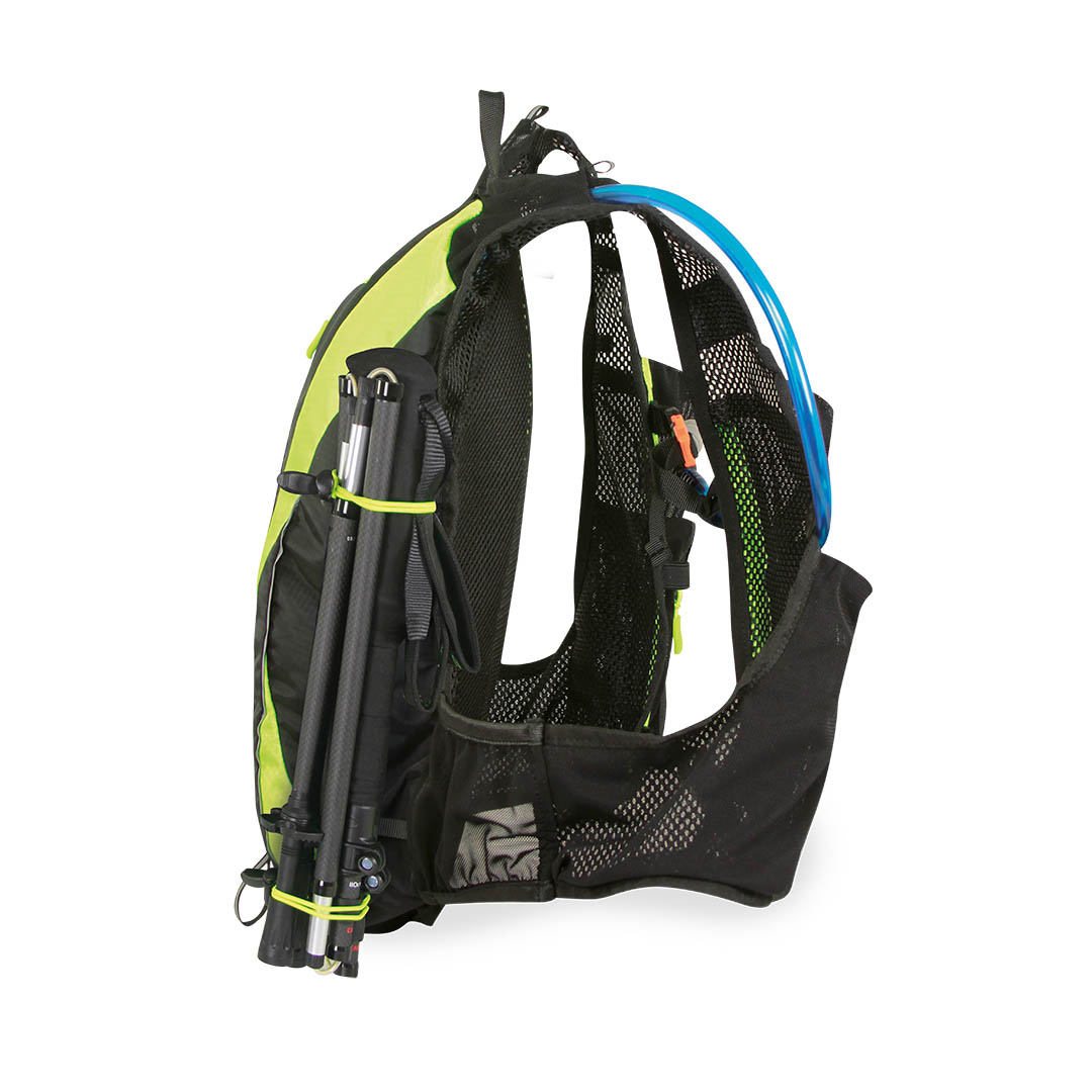 Pensato per garantire il massimo della praticità, è dotato di numerosi dettagli funzionali: porta bastoni, asole porta materiali e compatibilità con sistema di idratazione. Sul fronte sono presenti due tasche dedicate alle flask e due tasche in rete per avere sempre a portata di mano gli oggetti essenziali.