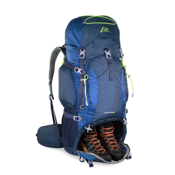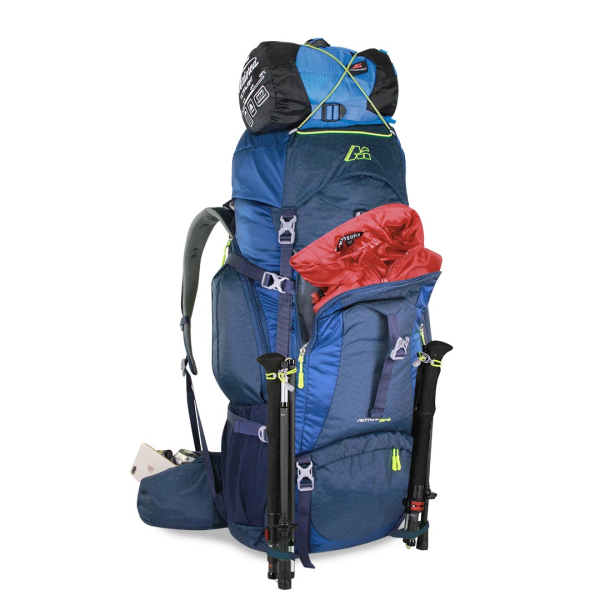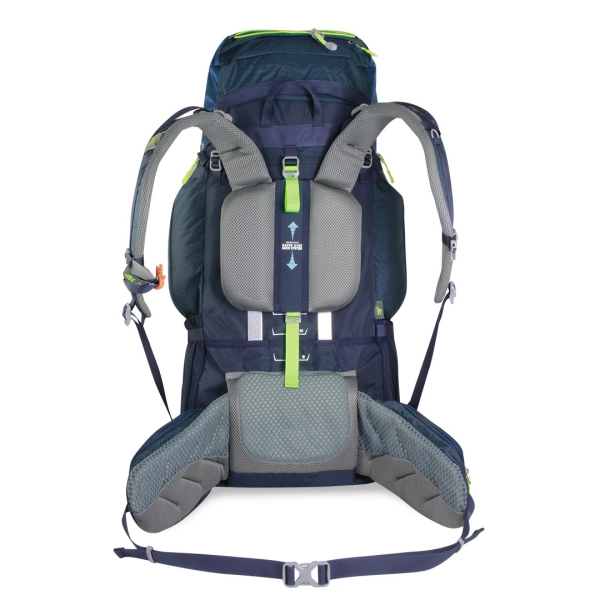 Lo zaino è dotato di spallacci regolabili, cinturino pettorale scorrevole con fischietto e tasche capienti porta oggetti su cinturone a vita imbottito. Si accede allo zaino dal cappuccio e anche dallo scompartimento separato sul fondo. E’ dotato di 2 ampie tasche laterali con nastri di compressione, 2 tasche elasticizzate porta borraccia, 2 tasche frontali molto capienti e doppia tasca sul cappuccio. Ha porta bastoni ed elastici rimovibili per il sacco a pelo o materassino. Compatibile con sistema d’idratazione e copri zaino inserito sul fondo (incluso).