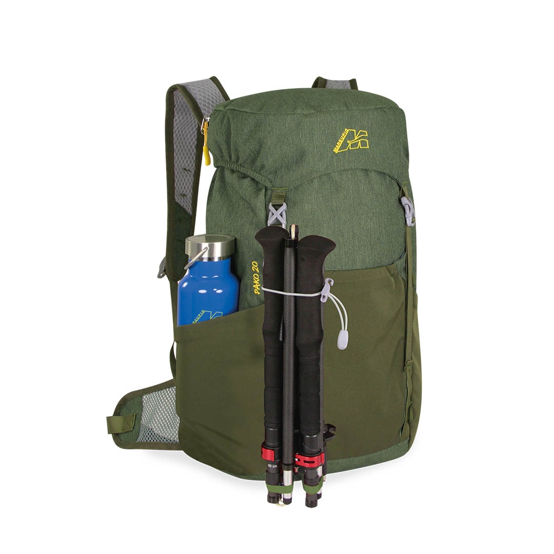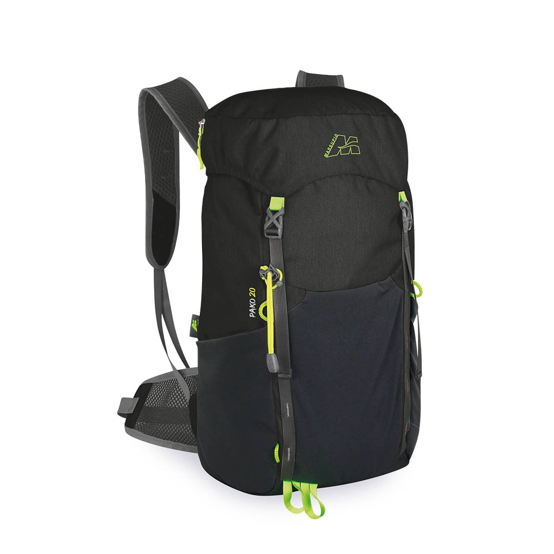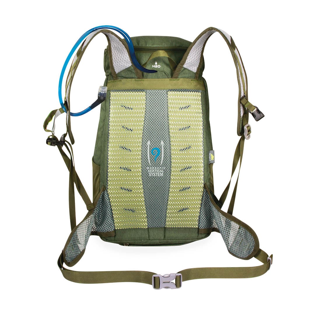 Zaino con dorso traforato traspirante. È dotato di spallacci leggeri e regolabili in rete, cinturino pettorale regolabile con fibbia fischietto, cinghia a vita regolabile e alette lombari in rete traspirante. Sul cappuccio ha due tasche, una delle quali è adibita al primo soccorso e presenta una stampa con numeri utili in caso di emergenza. Sono presenti 4 asole frontali per agganciare il kit 3 (porta caschetto) o il kit 4 (cinghie porta ciaspole), frontalmente ha una tasca elasticizzata, ha due tasche laterali elasticizzate e porta bastoni. È compatibile con i sistemi d’idratazione e ha incluso il copri zaino, collocato in una tasca dedicata sul fondo.