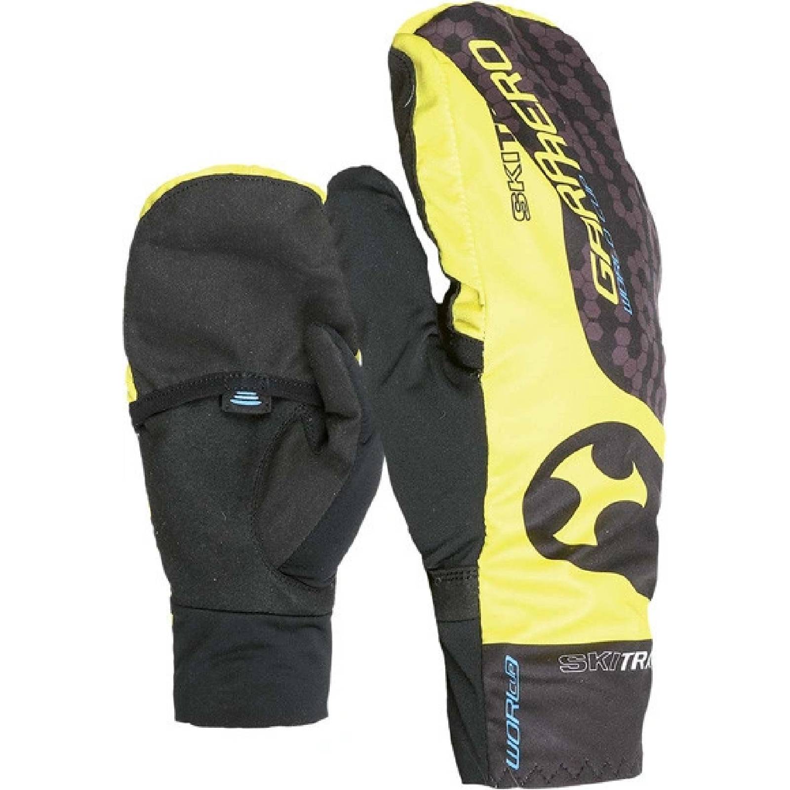 Guanti molto leggeri di SkiTrab. Sono dotati di coperta termica che può essere nascosta in una tasca integrata. Il guanto è inoltre rinforzato e dotato di cuscinetti antiscivolo sul lato inferiore delle dita e sul palmo.